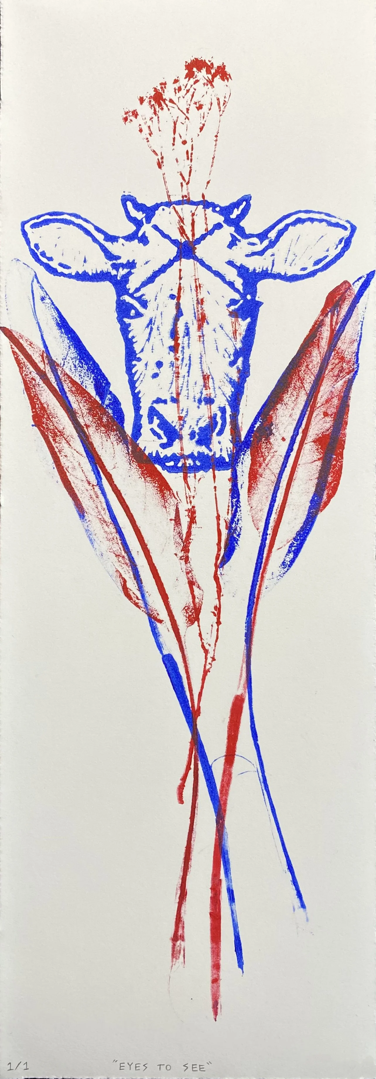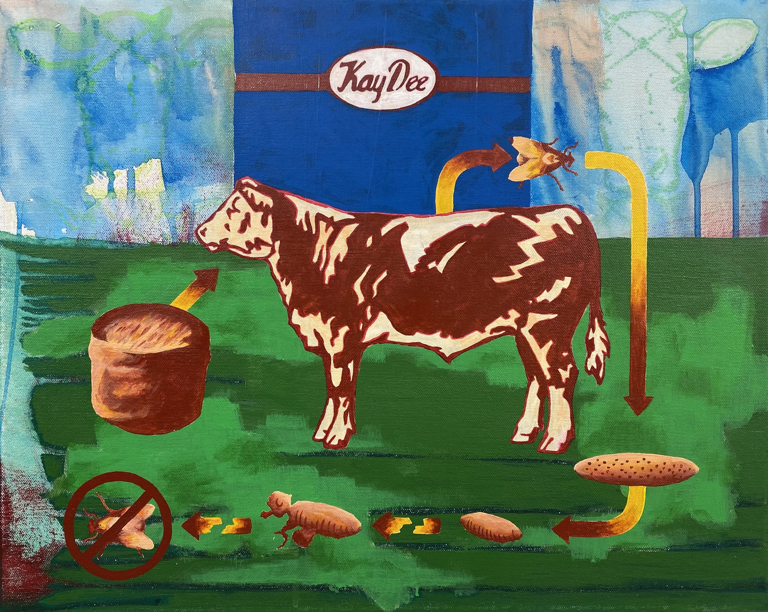 Soft Earth reflects on the complex relationship between nature and industry through memories of summer in the open pastures and working in the hayfield. The conflict of the natural order, technology, business, and the role of man are addressed in juxtaposing colors, marks, and motifs. Repetitive imagery represents the comforting monotony in the day-to-day uncertainty of raising livestock.